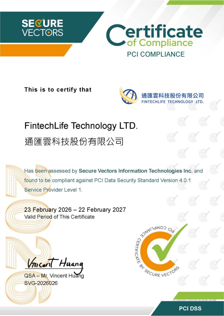 本公司受國際信用卡組織要求,必須通過及維持PCI DSS 支付卡產業安全標準之合規狀態,強化支付卡系統環境各項措施,並定期執行相關安全檢測,以保障蒐集、儲存或傳輸用戶支付卡相關資料時的安全性。